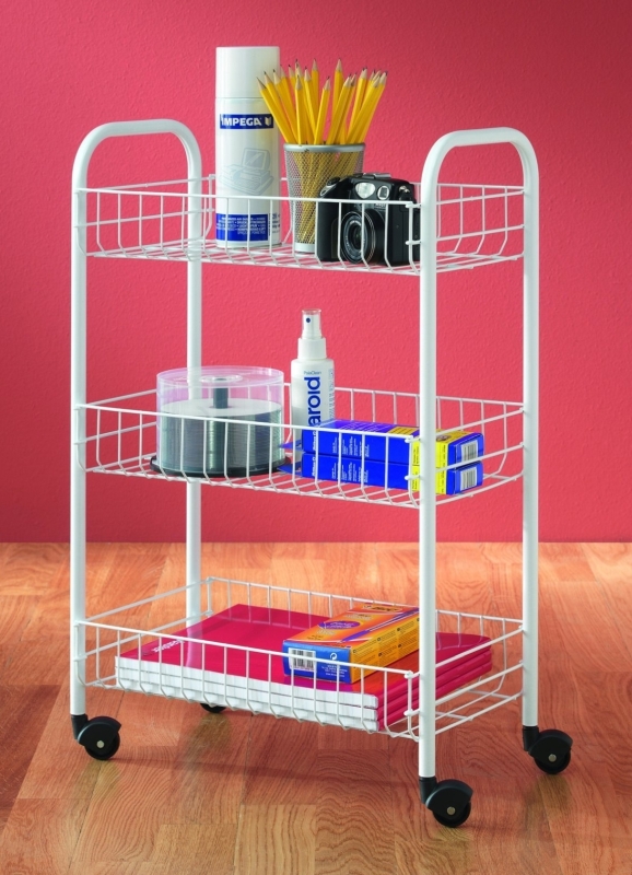 The Siena rolling cart designed by Metaltex includes three baskets and a plastic coating.