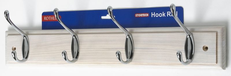 Rothley Standard Coat Hook Rail – 4 Brass Hooks.