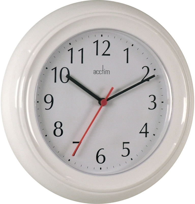 The Acctim 21412 Wycombe white wall clock has an IP rating of 55 meaning the clock is water & dust resistant. White case with white dial and Arabic numerals.