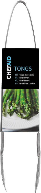 Multi-functional stainless steel food tongs. Dishwasher safe.