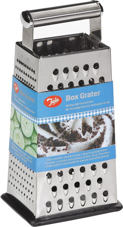 This 9″ stainless steel Box Grater’s 4 sides (a mixture of coarse and fine graters) are ideal for grating cheese – chocolate – cucumber as well as zesting lemons and oranges