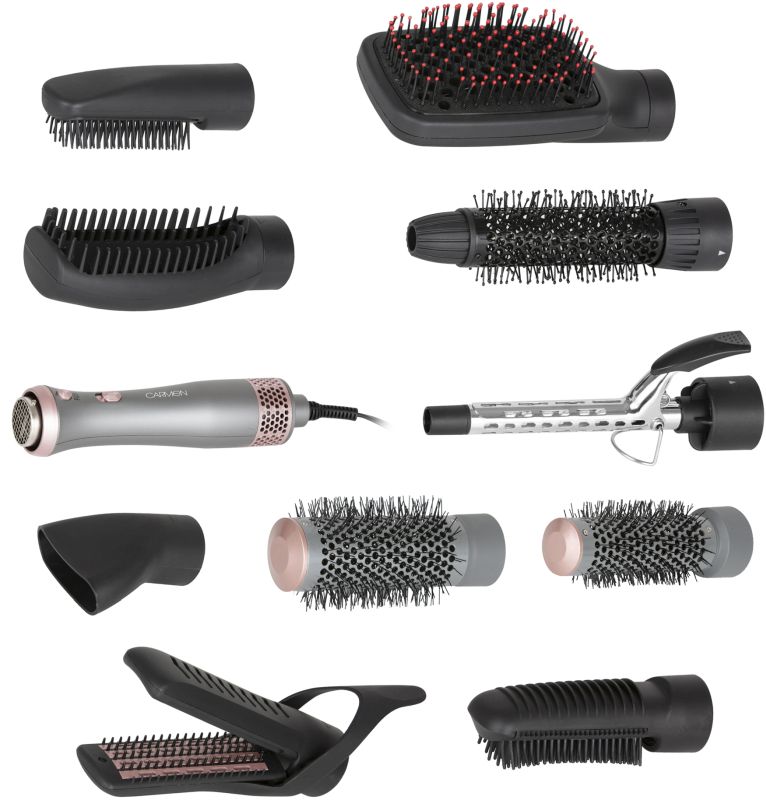 1 x medium and 1 x large curling brush – 1 x tight curling tong