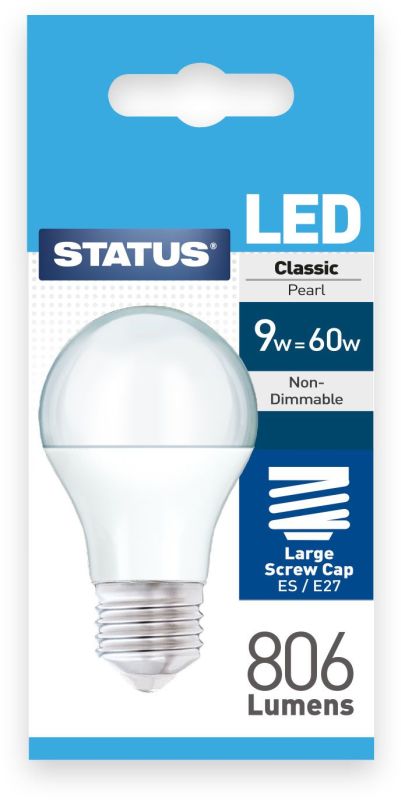 Status Classic LED Pearl Bulb. Large screw cap 9w equivalent of 60w.806 lumens.