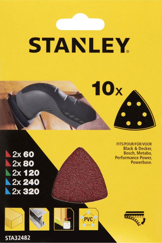 Pack of 10 assorted Stanley sanding sheets.Fits most.