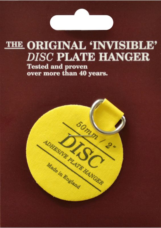 The original ‘invisible’ disc plate hanger tested and proven over more than 50 years – for hanging porcelain – china – earthenware – glass plates and plaques. The Invisible answer to ugly plate wires. No clips or hooks. The Disc Plate Hanger sticks to the back of the plate – holds it flat and secure against the wall and cannot be seen.
