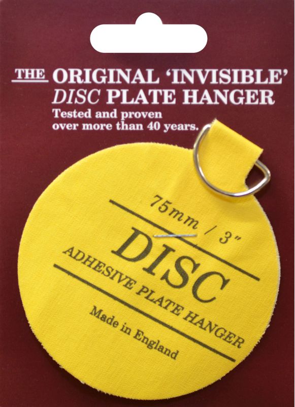 The original ‘invisible’ disc plate hanger tested and proven over more than 50 years – for hanging porcelain – china – earthenware – glass plates and plaques. The Invisible answer to ugly plate wires. No clips or hooks. The Disc Plate Hanger sticks to the back of the plate – holds it flat and secure against the wall and cannot be seen.