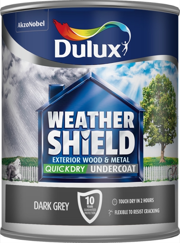 Dulux Weathershield quick dry undercoat with a 6 year weather protection guarantee (when used with weathershield exterior gloss). This flexible undercoat is specially formulated for use on wood to resist cracking – providing the perfect base for the top coat gloss.