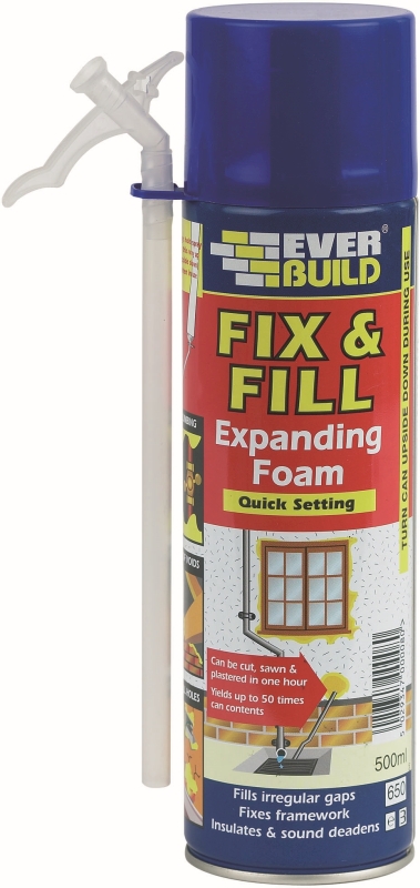 Fix & Fill Expanding Foam is a quick setting polyurethane based foam which expands greatly on application and yields up to 50 times original can contents. Can be cut – sawn – plastered and sealed over after approximately one hour. Fills irregular gaps – fixes framework – insulates and sound deadens. Cans are fully litho printed for effective display. Gloves are included in the cap.
