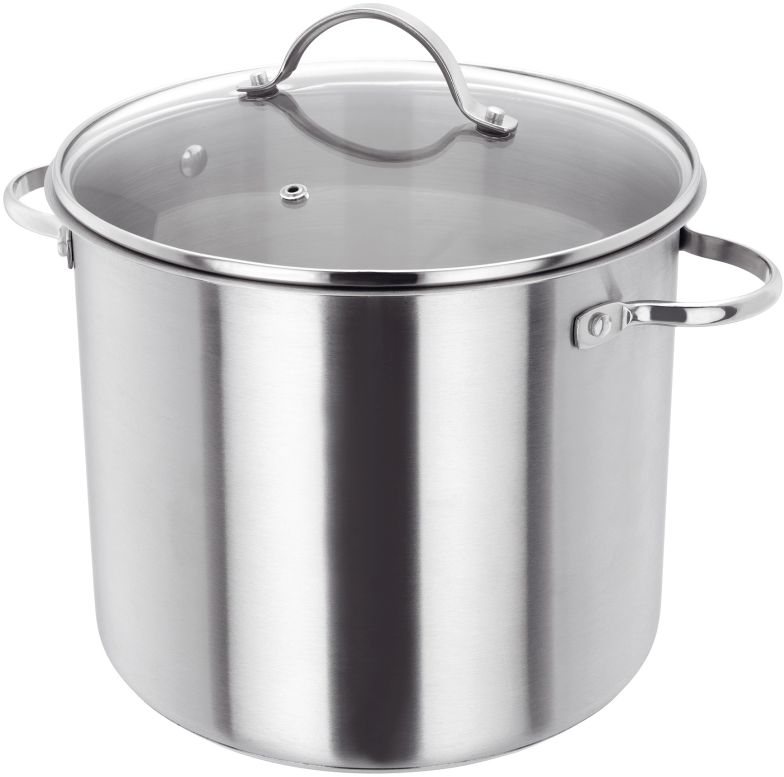 The 24cm Judge stainless steel stockpot has a capacity of 8.5 litres and is made from heavy guage polished 18/10 stainless steel. Suitable for all hob types including induction, the thick encapsultated thermic base ensures even and quick heat distribution preventing hot spots. The handles are made from hollow stainless steel that stay cooler than other stainless steel handles. Included with the 24cm stockpot is a vented glass lid, ideal for checking cooking without losing heat whilst on the hob, the vent prevents the contents from boiling over. The 24cm stockpot is suitable for use in the oven up to 210°C and is dishwasher safe for easy and convenient cleaning. Complete with a 25 year Judge guarantee.