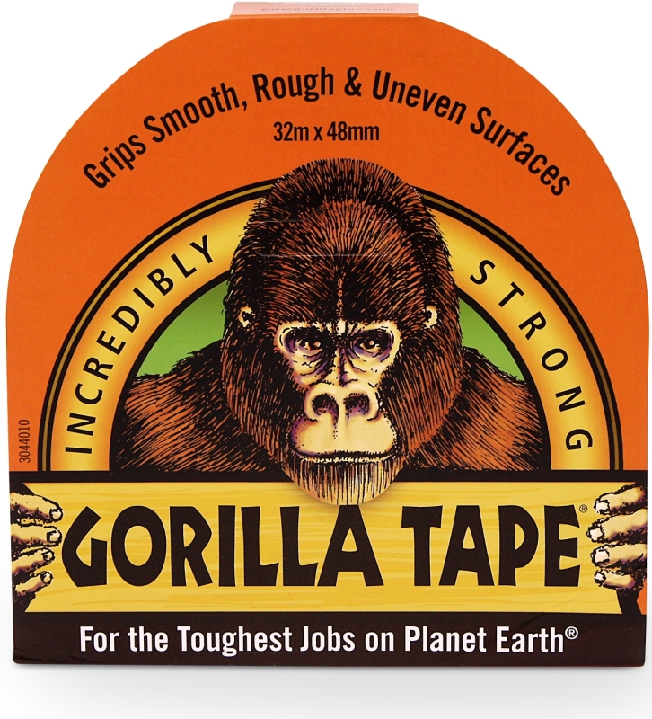 Gorilla Tape is an ultra tough cloth tape – made from 3 layers: a double thick adhesive layer – a strong reinforced backing and a tough all weather shell. The double thick adhesive is a high quality adhesive that will allow the tape to stick to rough – porous and imperfect surfaces. The strong reinforced backing has a high fibre count cloth backing that gives high strength – but can be ripped easily by hand. The tough all weather shell gives a tighter barrier against moisture and it has higher UV qualities than other cloth tapes on the market today. Gorilla Tape strikes a delicate balance between strength and usability – providing the maximum amount of sticking power without sacrificing ease of use. Suitable for contractors and DIYers – as well as sports enthusiasts and outdoor adventurers looking for a tough and portable tape to repair – patch or hold equipment while building and remodelling – landscaping – hunting – fishing – hiking – camping – boating – surfing or bicycling. 3 strong ingredients have made Gorilla Tape successful to work with. The combination of double thick adhesive – strong webbed backing and rugged all-weather shell make it one of the few all-purpose tapes to consistently stick to smooth surfaces.
