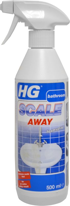 HG where there is water – there is limescale. Limescale leaves a dull film behind on tiles – shower cubicles – bath tubs – sinks – taps – worktops and in the toilet. HG scale away removes this limescale thoroughly and quickly and leaves nothing other than a brilliant shine