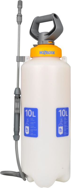 The Hozelock 10L (max fill* 8L) sprayer is a multipurpose, effective pressure sprayer for outdoor use.
