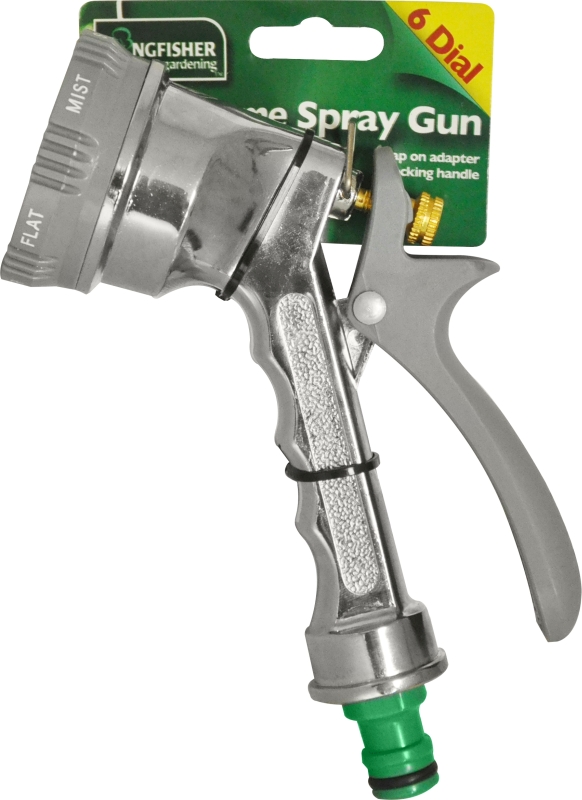 6 Dial spray gun with soft grip locking handle and snap action adaptor.