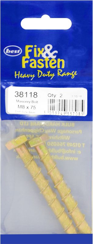 Masonry Bolt M8x75mm pk2