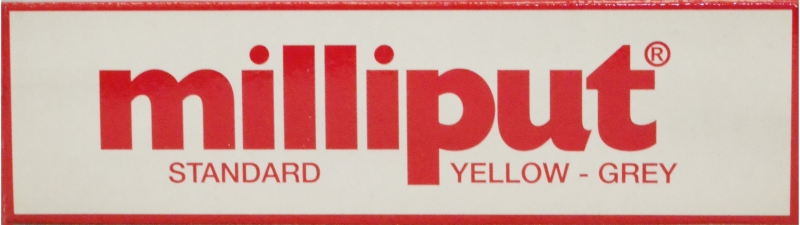 Milliput is a two-part – cold setting – non shrinking epoxy putty sold in cartons containing 113.4gm. One 56.7gm stick of each part. We produce five grades of Milliput: Standard (Yellow/Grey) – Terracotta – Silver Grey – Black and Superfine White. Milliput can be used for repairs on many types of materials including metals – plastics – masonry – wood – glass and ceramics and can be used in places where welding is impractical. Milliput products are available from most leading model/hobby shops – art and craft suppliers – independent hardware stores and plumbers merchants.