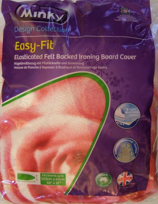 This Minky elasticated ironing board cover has been designed using strong elastic for a better – tighter and easier fit. The felt backing provides a crease free ironing surface allowing your iron to run smoothly across all fabrics. The ironing board cover fits medium sized boards up to 110x35cm and is proudly manufactured in the UK.