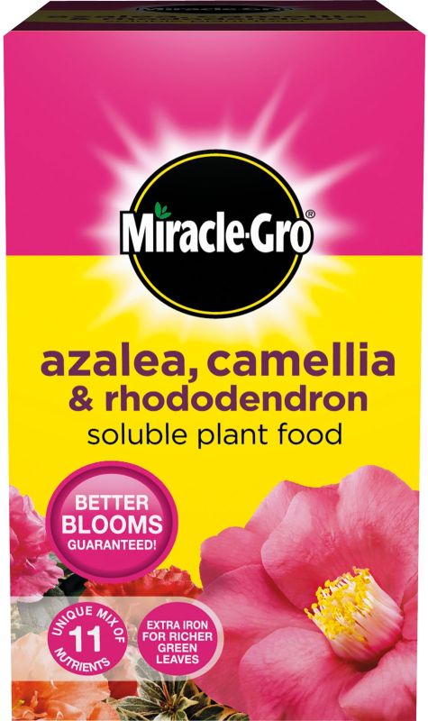 Miracle-Gro Azalea – Camellia & Rhododendron Soluble Plant Food specially formulated to give just what acid-loving or lime-hating plants need for healthy growth. Used regularly from flowering to mid-summer – this special plant food will encourage strong – healthy leaves and big flower buds to give a beautiful display of flowers next spring. It is greatly beneficial to other ericaceous plants such as pieris – acers and raspberries. Contains sequestered iron – which is easy for ericaceous plants to take up even in alkaline soil and is essential to prevent leaf yellowing.