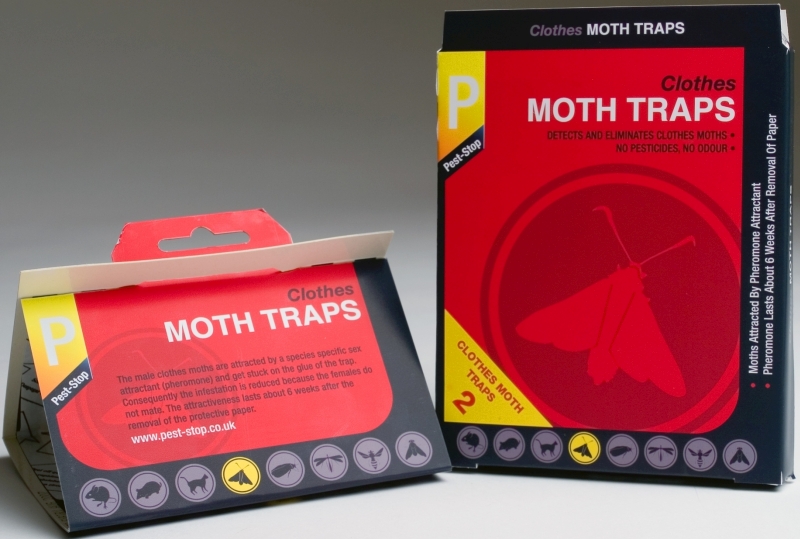 These effective traps are designed to be hung in clothing storage areas. They are simple to assemble and installed in seconds. The trap is baited with a pheromone attractant for clothes moths which are lured onto the sticky pad inside the trap where they are caught.