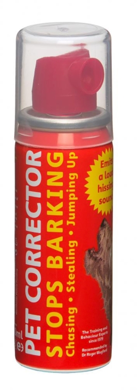 The Pet Corrector helps stop Barking – Chasing – Stealing – Jumping Up – Place Avoidance and other unwanted behaviours. It works by emitting a hiss of compressed gas to interrupt a dog’s unwanted behaviour. The overall effect is to grab the attention of a dog. It is used and recommended by trainers and behaviourists throughout the world and over 3.5 million have been sold to date. It is recommended that you read the user guide (supplied free with the product) prior use.