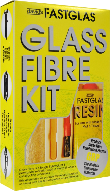 The U-Pol FASTGLAS is a polyester resin kit – containing resin – hardener – glass fibre – mixing cup – and plastic gloves