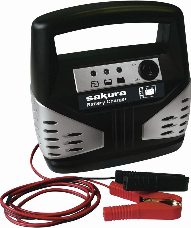 The biggest reason for calling out the emergency services is a flat battery. It can be caused if lights – radio – another electrical equipment are left on – or if the alternator is failing to charge the battery. Don’t get stranded -thanks to the Sakura 6Amp Battery Charger. It will charge all 12 volt lead acid batteries in cars – vans and 4x4s with engine size up to 1.8 litres – and has an easy to read charging gauge – se and a built in carrying handle. Store it in the garage and simply plug it into the mains. It will take only a few hours to recharge your flat battery.