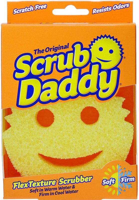 Scrub Daddy’s FlexTexture® changes based on your water temperature! In warm water he’s soft and more absorbent. In cool water he’s firm for scrubbing seriously stuck-on messes. He’s ergonomic – doesn’t scratch – rinses free of debris – and resists odors for up to 8 weeks!