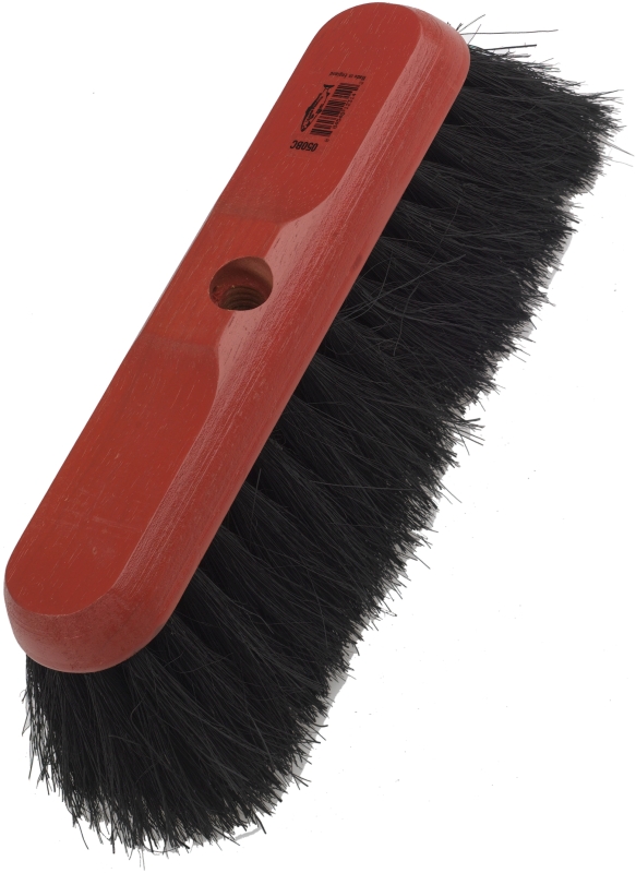 Black coco broom – 279mm skived wood block (red) – soft – for dry dusty surfaces.