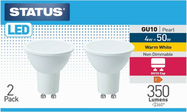 Status GU10 LED 4w = 50w Warm White Bulb Pack Of 2