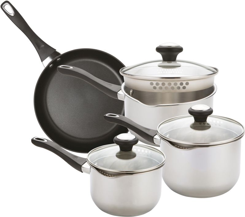 set includes: 14cm milk pan, 16cm saucepan, 18cm saucepan, 20cm saucepan and a 28cm frying pan.