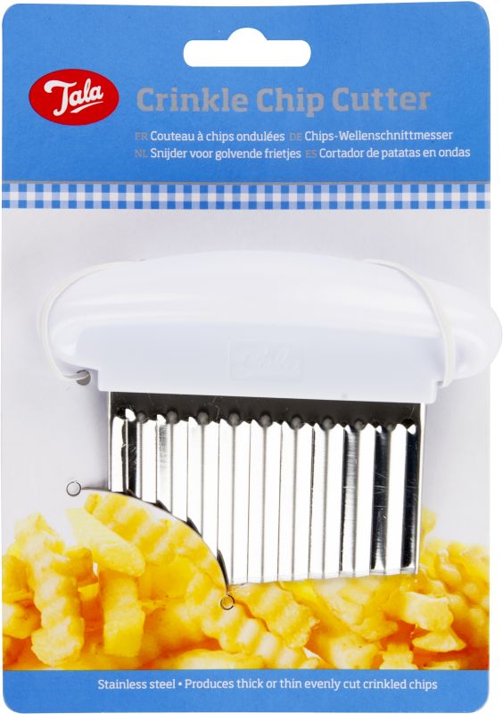 Stainless steel bladed crinkle chip cutter. Produces thick or thin evenly cut crinkled chips.