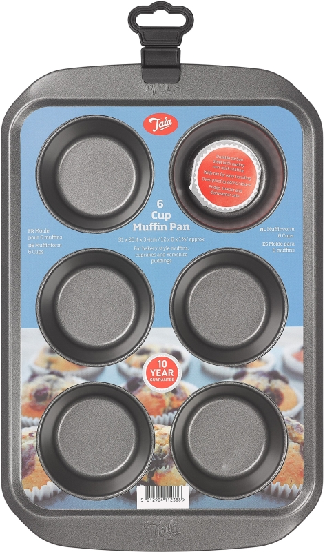 This 31 x 20 cm 6 Cup Muffin Pan is perfect for making muffins – cupcakes and jam tarts. From our new ‘Everyday’ range of bakeware – perfect for your core everyday pieces. Made from carbon steel with a superior Whit ford Xylan non-stick coating – ensuring even heat distribution – easy food release and the ability to withstand the trials of everyday use. Each product is designed for stack ability and features wide flat handles – allowing transportation from the oven with ease. we are proud to have the Tala logo embossed on each product from the range – celebrating our status as one of Britain’s oldest and most recognised baking brands. Specifications: Safe for use with metal utensils. Dishwasher – fridge – freezer and oven proof to 240’C/ 464’F. Tala is one of the oldest and best loved kitchenware brands supplying products worldwide – a trusted supplier of baking and cake decorating equipment since 1899. We have a comprehensive range of Baking and Icing essential products that are suitable for both the beginner and expert – perfect for the full time or the occasional baker.