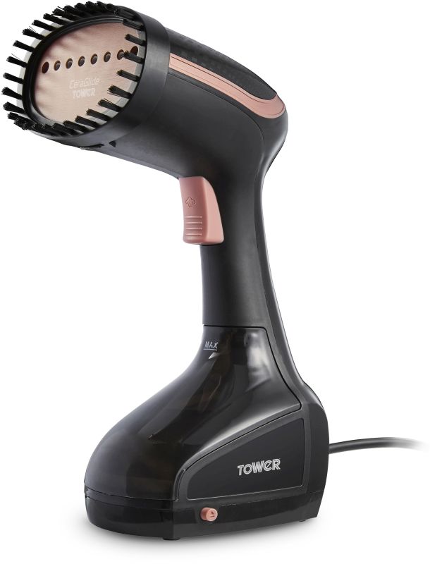Give your clothes a fresh look using this stylish rose gold Garment Steamer. It effortlessly irons out wrinkles in your clothing – with the ceramic soleplate distributing heat evenly so your clothes look their best. The continuous steaming can last over 5 minutes – which makes it perfect when you are doing more than one item in a single session – such as a 3 piece suit or bedsheets. This garment steamer features a 2.5m power cord – which provides ample movement to help avoid restrictions around rooms with plug sockets in more awkward areas. A measuring jug and brush head attachments are also included for accurate and efficient steaming.