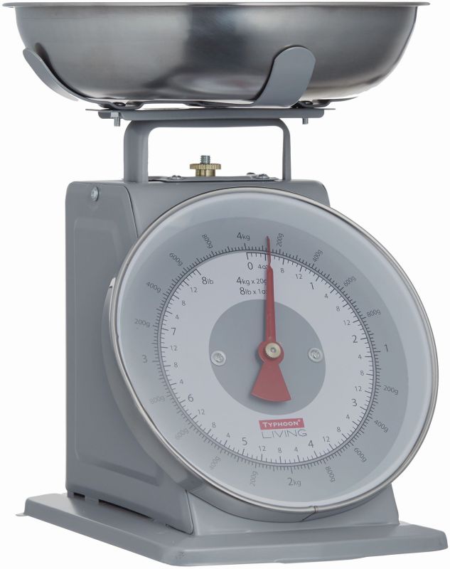 The Typhoon Living Scales in grey are a perfect mix of vintage and modern kitchenware. The ideal prep solution for any kitchen. The scales measure in grams – Kilograms – Lbs and Oz – making it easy to follow your favorite recipe. The precision mechanism of the Scales makes for simple baking – ensuring your master pieces turn out perfectly each time. The hardwearing colour coated steel body makes for a timeless piece – pale grey colour matches traditional and modern kitchens. The large 4KG capacity stainless steel bowl sits neatly on top of the Scales. This high quality – colour coated steel range is a great way to inject a bit of vintage style into your kitchen. Each piece in the range features strong – seamless construction.