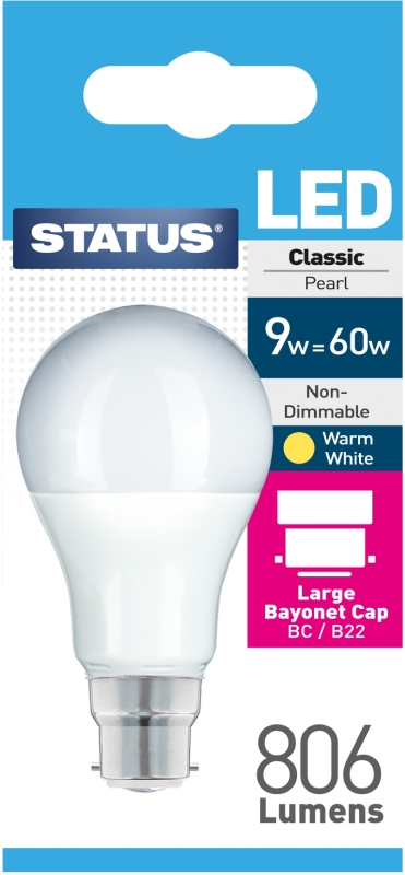 Status Classic Pearl Large Bayonet Light bulb .9w/60w 806 lumens.
