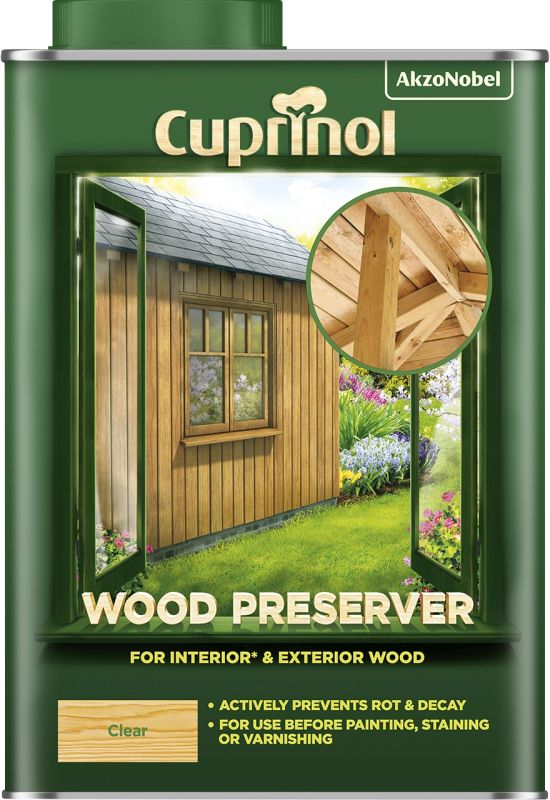 Cuprinol Wood Preserver Clear is a colourless general-purpose preserver for interior* or exterior use prior to painting, staining or varnishing. It gives deep penetrating protection to sound wood against decay, mould and blue-staining fungi. *Occasionally wet or interior wood with risk of condensation.