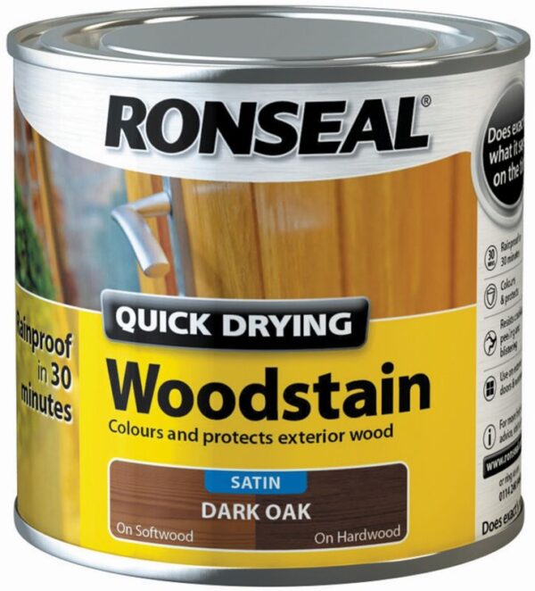 The weather can be unpredictable – so after 30 minutes our Quick Drying Wood Stain will have coloured your exterior wood and will be rainproof. You just have to choose what wood shade you fancy.