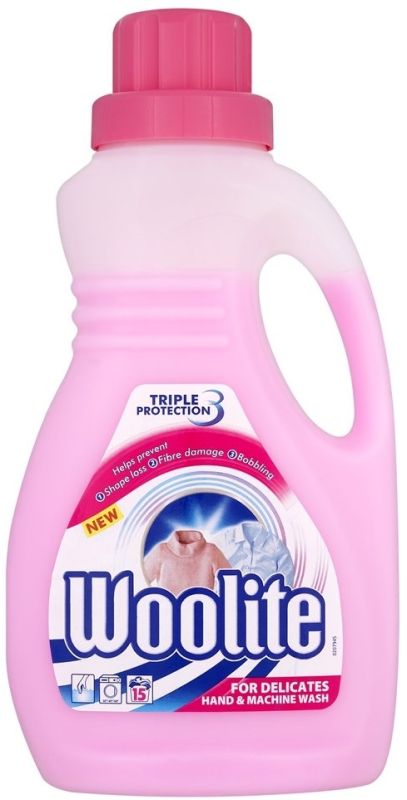 Woolite for Delicates Product Description Woolite for delicates is a liquid detergent specifically developed to wash all the delicate fabrics you love to make then feel like new again. Suitable for use on your wool, silk, cotton, microfibres and mixed fabrics. Its distinct triple protection formula helps prevent: Shape loss: Woolite does not contain harsh ingredients so it won’t cause damage like stretching or shrinking Fibre damage: Woolite won’t cause fabric damage like fraying and thinning Bobbling: Woolite contains wool and silk care technology and leaves your clothes feeling soft .